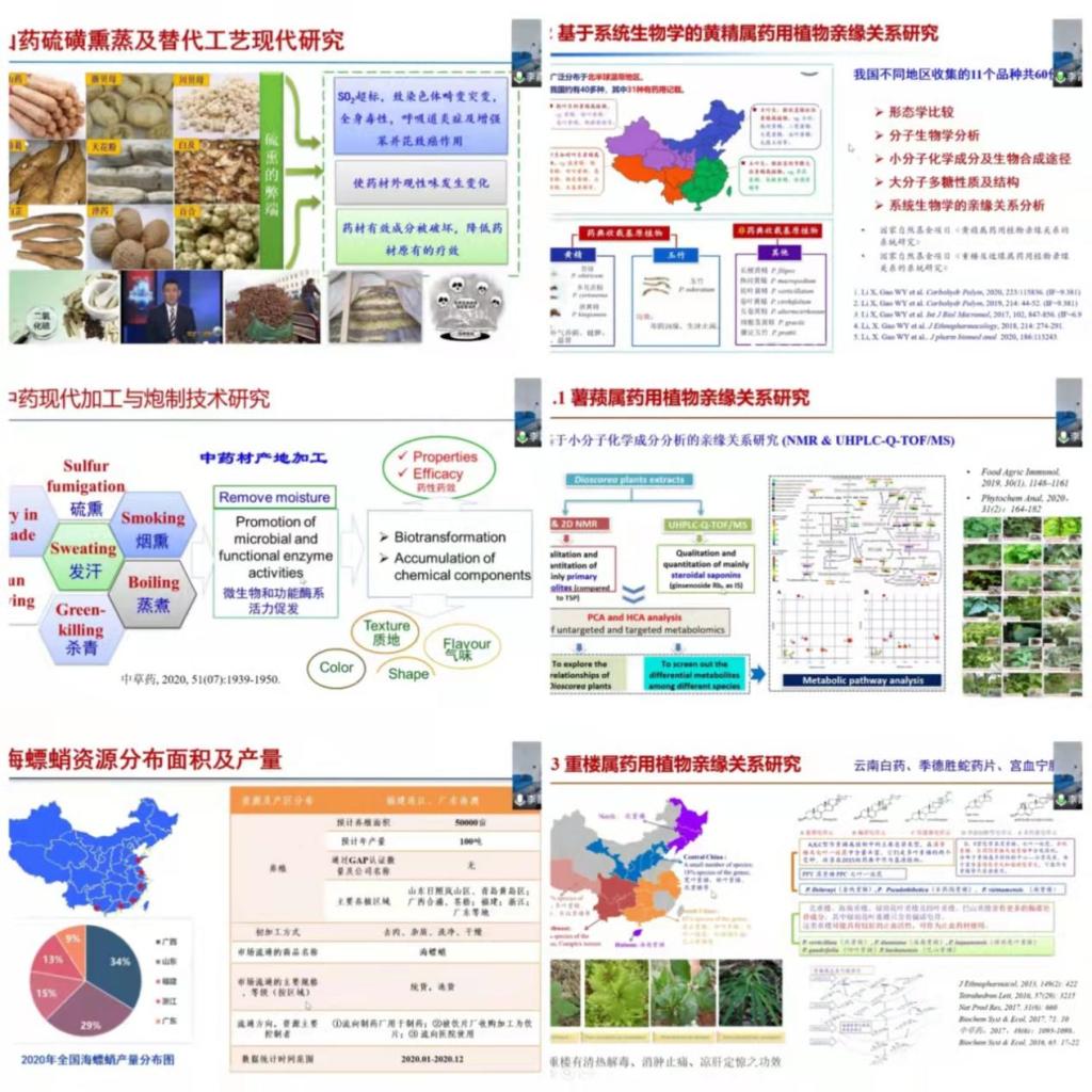 报告中李霞教授首先从资源研究包括药用植物亲缘关系、药材质量分析、动态评估等方面,探讨了如何从源头上保证成药质量和疗效的稳定性和有效性的问题,以“大黄”和“山药”为例重点介绍了中药材产地加工关键技术。分享了传统加工技术的科学内涵及规范化研究成果,详细介绍了针对中药材加工硫熏和烟熏等工艺技术难题,采用现代技术攻克困扰中药材质量的硫熏、烟熏替代技术及推广使用情况。在质量标准研究方面,李霞教授介绍了采用现代质量控制理论及分析技术系统全面制定部分中药材和中药饮片的质量标准,最后分享了基于大分子多糖和淀粉基础研究的中药功能食品的研发成果。
