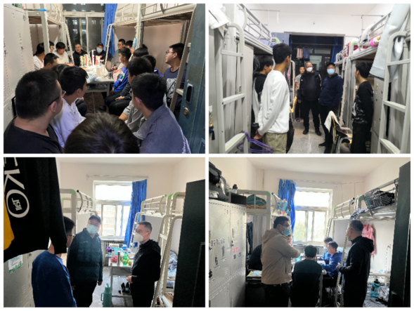 早上8:00学院领导深入学生宿舍走访查看新生起床上网课情况、宿舍卫生情况等。晚上7:30院领导再一次来到新生宿舍,细心询问新生入学后的住宿、就餐等生活情况,“刚来学校有什么不适应的地方吗”“有什么困难及时和老师沟通”,面对院领导亲切的问候,同学们主动分享、积极回应。田永强院长嘱咐同学们严格遵守学校疫情防控的各项要求和制度,积极配合做好核酸检测,同时注意宿舍安全;田院长还鼓励大家相互交流、相互帮助;专注学业,树立远大志向;认真学习、积极参加各项活动,享受校园生活;希望同学们可以实现自己的理想,在大学的学习生活充实而有意义。