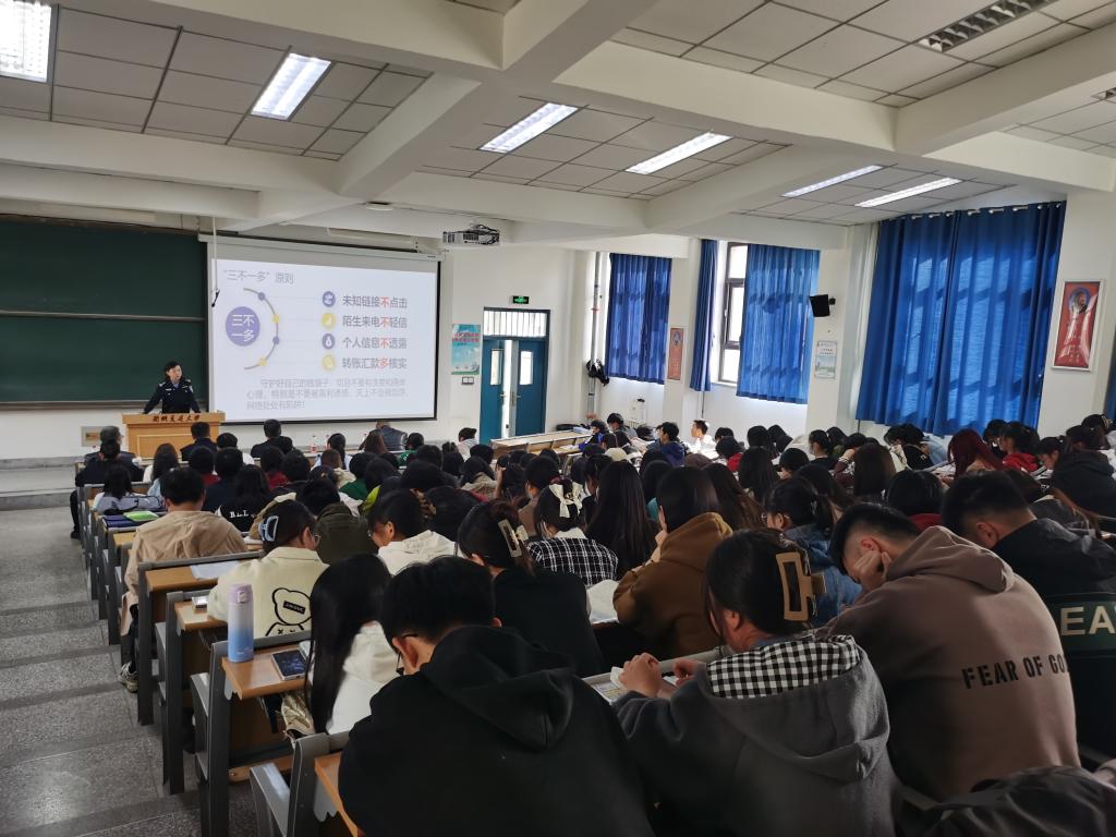 反诈中心教导员的讲解数据详实,案例丰富,深入浅出、发人警醒,从电信网络诈骗到校园套路贷,从冒充网购、快递平台客服诈骗到冒充亲朋好友诈骗,各种手段层出不穷,真实案例惊心怵目,轻则钱财损失,重则家毁人亡,讲座中教育广大学生一定要学会识别诈骗号码,管理好自己的电话卡、银行卡,告诫同学们,未知链接不点击,陌生来电不轻信,个人信息不透露,转账汇款多核实。