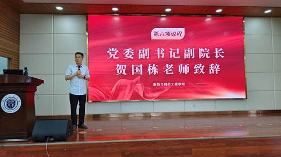 为发挥学生榜样示范引领作用,激发全体学生学习先进楷模、争做先锋模范的积极性,树立学业中心导向,推进学院优良学风建设,营造创先争优、共同发展的良好氛围,5月23日下午生物与制药工程学院召开2023学年度学生先进集体、优秀个人表彰大会。生物学院党委副书记、副院长贺国栋,学工办、团委相关负责老师、辅导员、班主任和全院学生参加了大会。