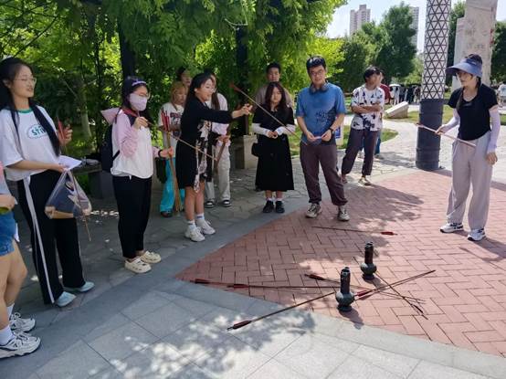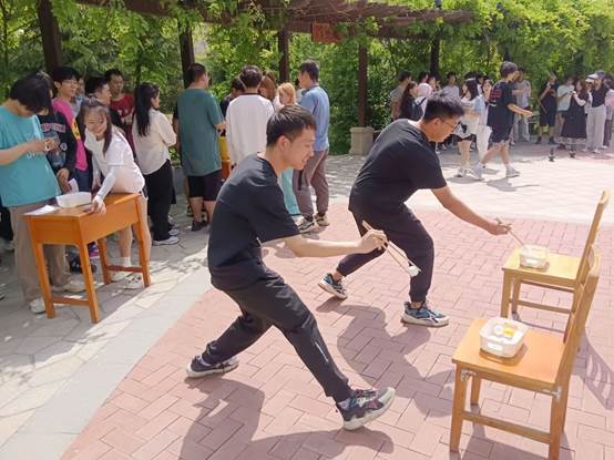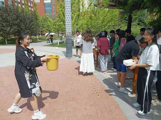 本次趣味活动共包含:球行万里、大珠小珠落纸篓、趣味投壶、你划我猜、终极密码、胡辣汤和听歌识曲7个游戏。活动过程中,大家热情高涨,在主持台领取到积分卡后,便投入到各自感兴趣的游戏项目中,通过各项目类型负责人的介绍了解游戏规则后,便正式开启“冒险”。每一项游戏结束后,各项目负责人会在同学们的积分卡上贴上贴纸作为留念。活动中处处可见同学们脸上洋溢的笑容,他们彼此配合,相互探讨游戏技巧,在逐渐默契的交流中渐渐体会到民族团结、合心同道的心灵连接。微风袭来,送走炎热,也迎来了活动的尾声,本次活动最终在所有参赛同学和老师的合影中圆满结束。