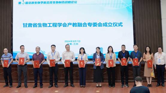 大会进行了甘肃省生物工程学会产教融合专委会成立及揭牌仪式。会上,甘肃省生物工程学会车团结会长宣布正式成立甘肃省生物工程学会产教融合专委会,并为专委会成员颁发了聘书。该专委会是以兰州交通大学为依托,联合省内大专院校、科研院所、事业单位等机构,致力于开展人才联合培养、校企科研合作、科研成果快速转化等工作。通过这些举措,专委会旨在推动甘肃省生物医药领域的产学研一体化发展,促进技术与市场的紧密结合,为地方经济和社会发展贡献力量。