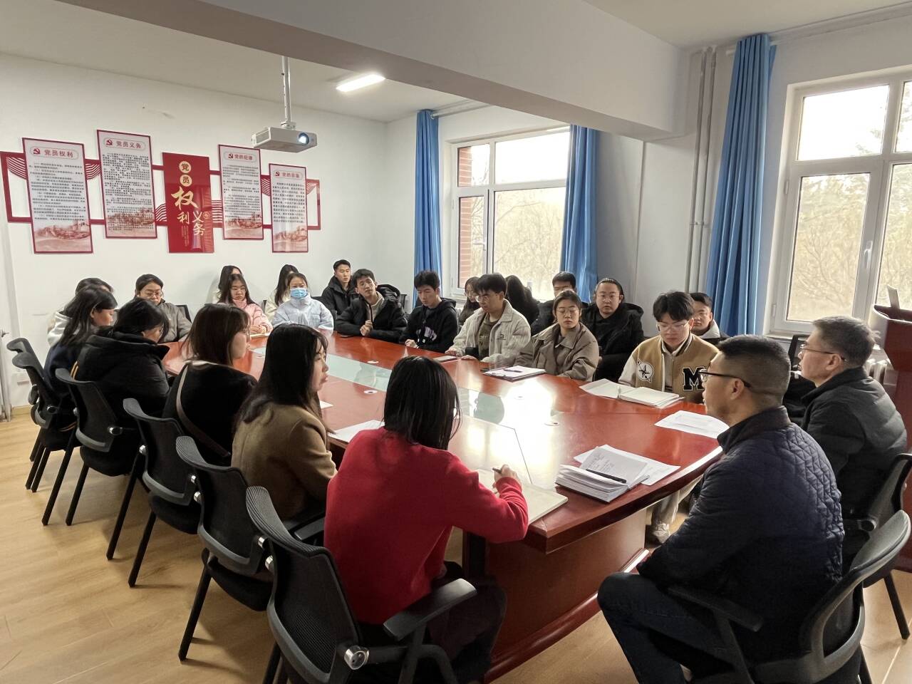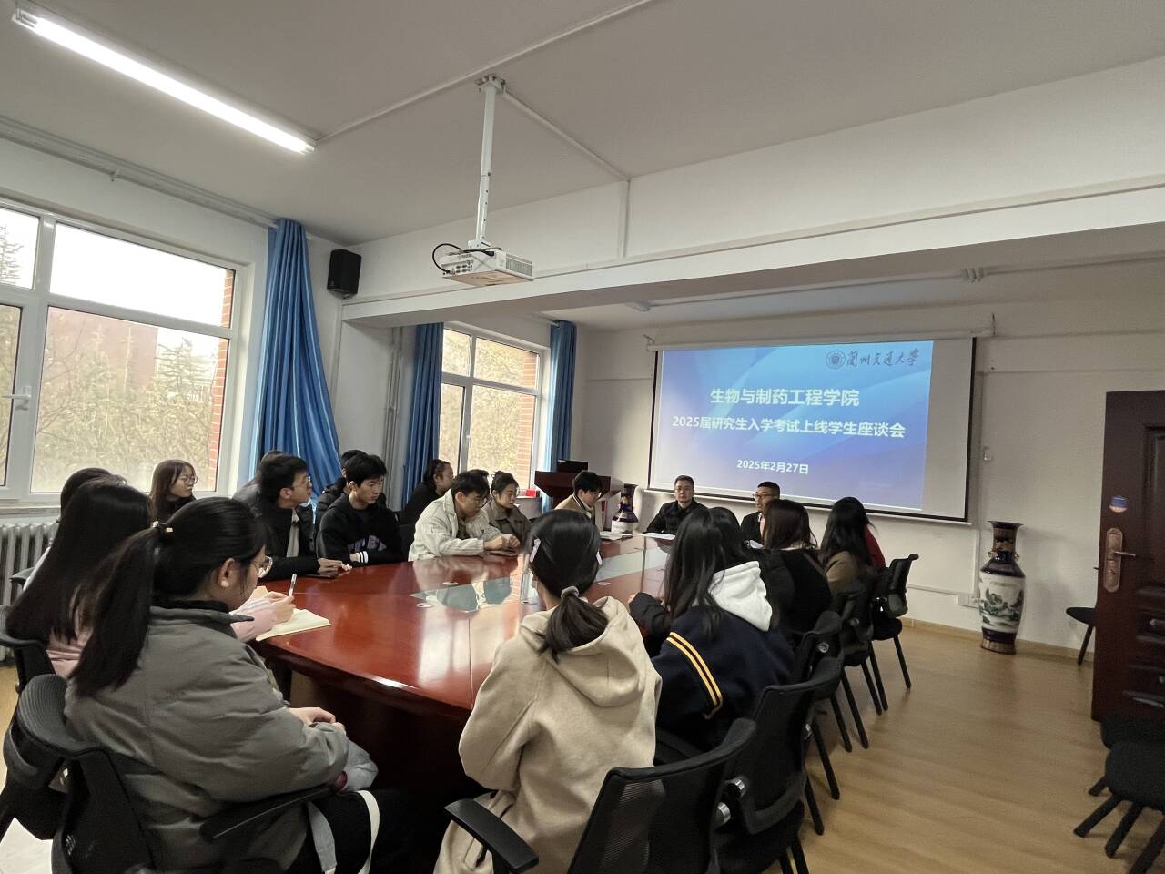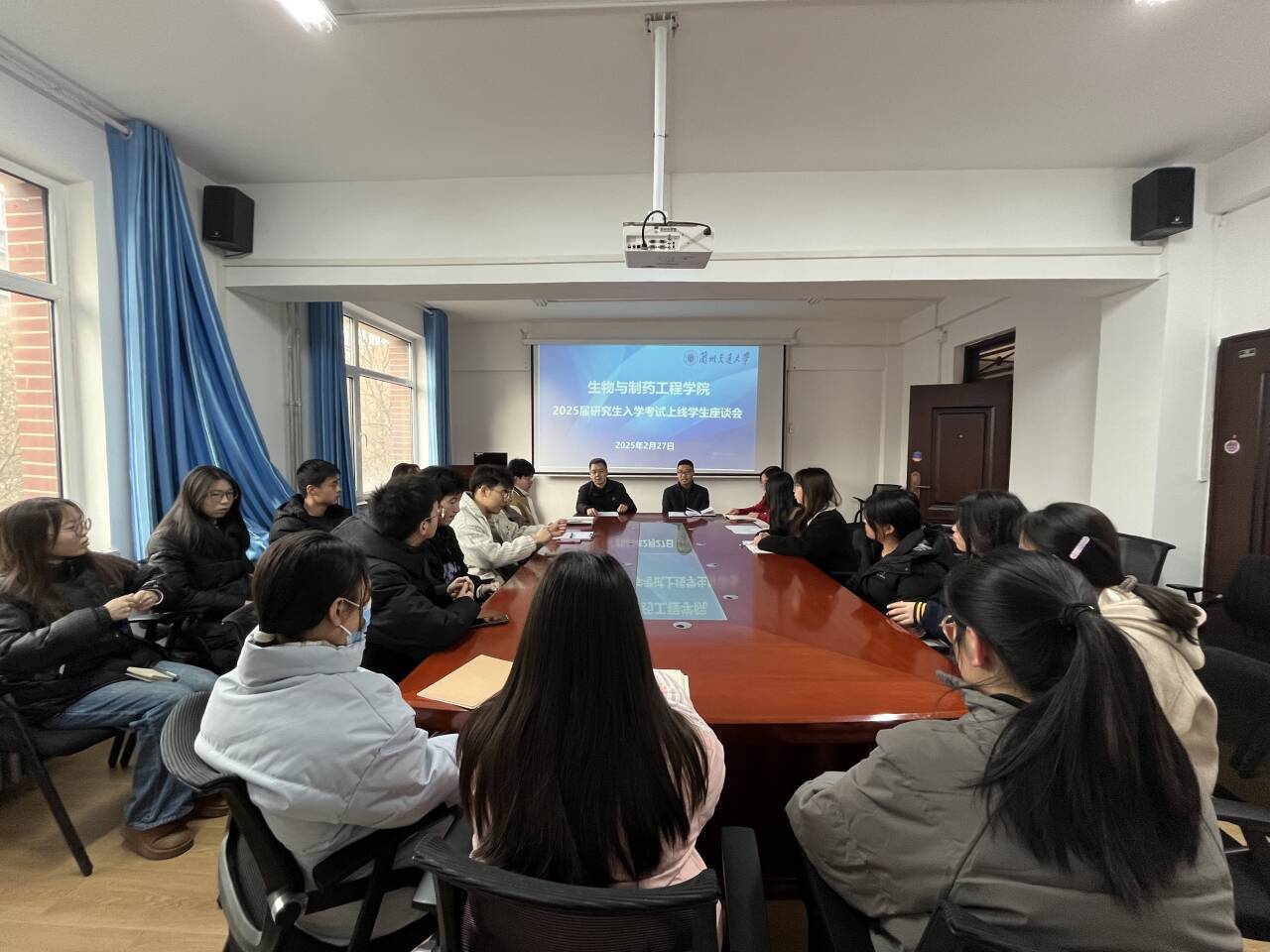 为切实提升考研学子复试竞争力,助力学生实现深造理想,生物与制药工程学院于2025年2月27日在学院会议室举办“2025届研究生复试备考专题座谈会”。学院副书记、副院长贺国栋、副院长王晓强、学院研究生工作办公室老师与32名通过初试的学子共聚一堂,围绕复试策略、科研素养提升等核心议题展开深度交流。