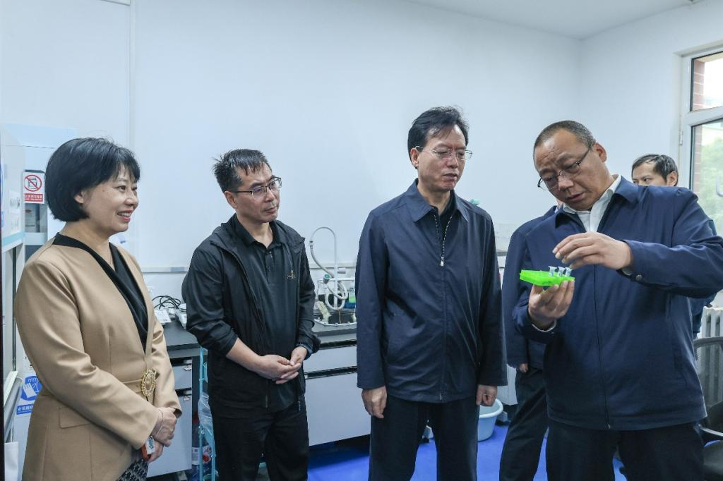 9月28日下午,甘肃省政协副主席贠建民率调研组一行莅临生物与制药工程学院,就生物制造高质量发展开展专题调研。校党委副书记、常务副校长聂磊及学院主要负责人陪同调研。