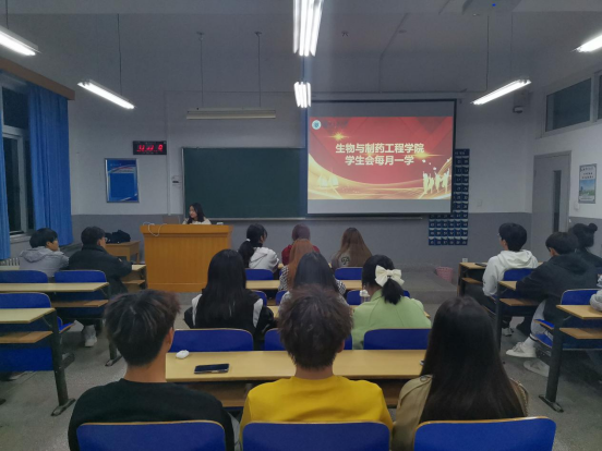 2023年10月29日19:30,为深入贯彻习近平总书记致全国青联十三届全委会和全国学联第二十七次代表大会的贺信和党中央致词精神,全面落实全国学联二十七大确定的各项工作部署,加强和改进新时代学联学生会工作,生物与制药工程学院学生会开展了“每月一学——加强和改进新时代学联学生会工作实施方案”专题学习会议。
