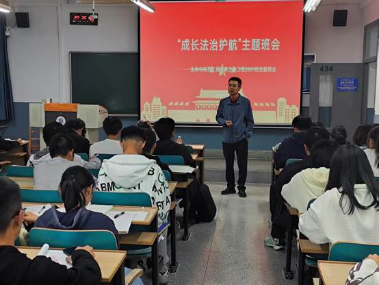 为进一步筑牢学生专业认知根基、强化安全法治意识,2025928日,生物与制药工程学院副书记、副院长贺国栋走进大一新生晚自习课堂,以主题班会“面对面”交流的形式,为同学们带来一场兼具深度与温度的专题教育课。