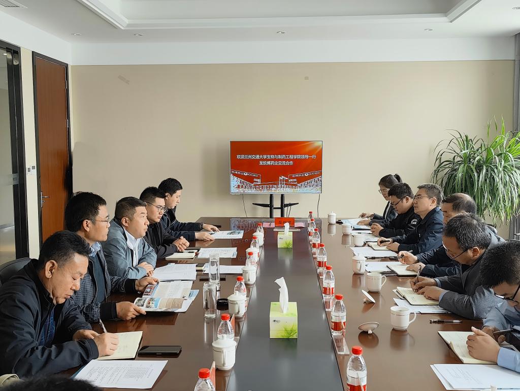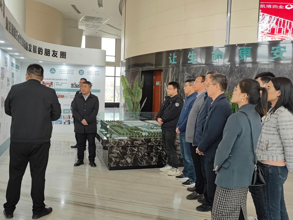 在药业集团总经理卢昌玮的陪同下一行人参观了位于兰州新区集团总部的生产线、实验室,了解研发项目、岗位设置和人员需求,随后与集团公司董事长山宝军及相关负责人一起座谈。
