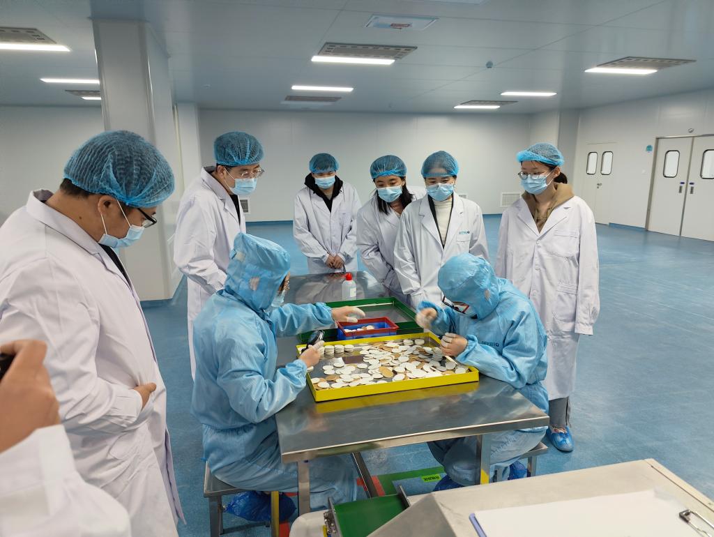 在凯博药业党支部书记、董事长山宝军的带领下,师生们首先参观了公司文化及产品展示厅,了解企业发展历程、生产情况、经营规模及未来发展规划。